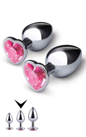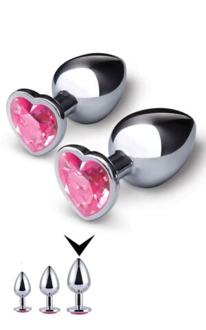(Видео) Мега попуст! Метален срце среден бат плаг со розево каменче 8,5 х 3,5 см (Среден)