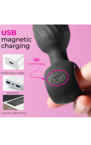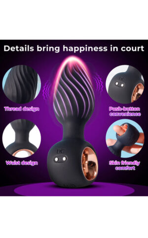 Овој бат плаг е направен од силикон и може да се контролира или со копчето на самиот производ или со далечински управувач.