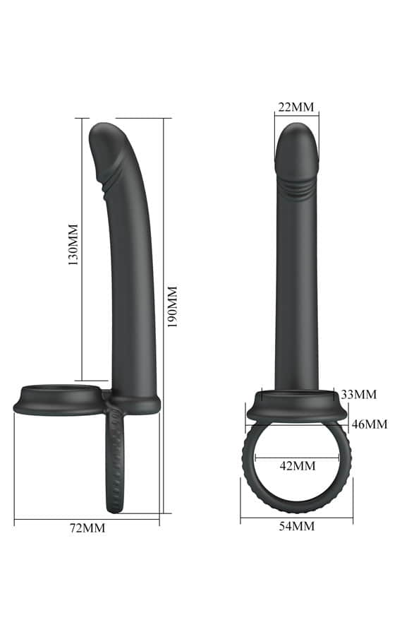 Овој додаток со прстен за пенис и тестиси е опремено со два еластични силиконски прстени – еден за пенисот и друг за тестисите на корисникот. Прстенот за пенисот ја задржува крвта во ерекцијата, правејќи ја поцврста и подолготрајна, додека оргазмот станува поинтензивен. Долниот прстен, пак, се става околу тестисите за дополнителна стабилност. Има изразена глава, зашилен врв и цврсто тело што овозможуваат лесна пенетрација – токму она што ви треба во жешките моменти.