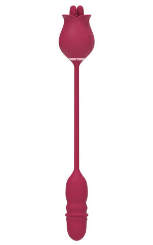 Хит! Силиконска ружа од едната страна е клиторален стимулатор а од другата страна вибратор што вибрира и се мрда