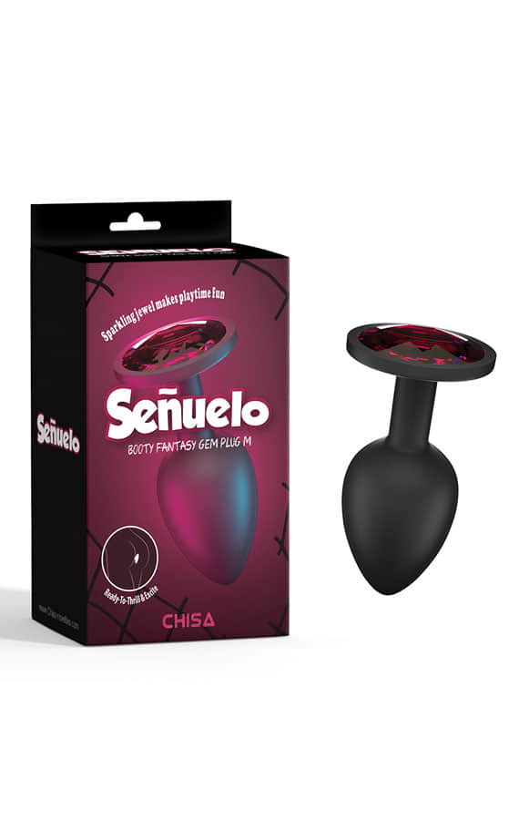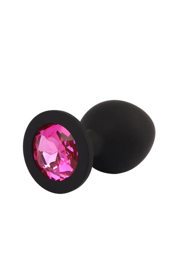 Луксузен црн силиконски бат плаг со црвен камен 8 X 3,5 см. Средна Големина (Senuelo)