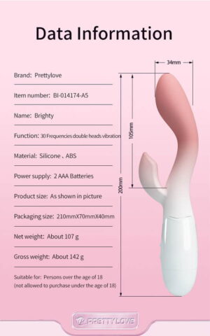 Луксузен розево-бел силиконски вибратор со 30 модови на вибрација 20 X 3.4 см. (Pretty Love)