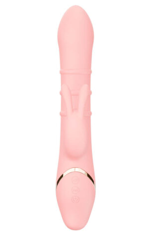 Овој луксузен силиконски вибратор има нешто што многу го немаат. Во исто време има клиторална и вагинална стимулација и 3 ребра кој мрдаат нагоре надоле за додатна стимулација.