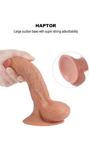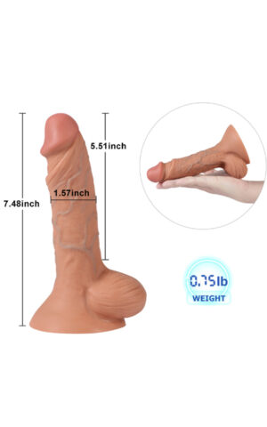 Овој господин е толку нежен што нема да сакате да го оставите ни за момент! Има мазно тело со малечка главичка, и тестиси на дното, и е спремен да Ве направи неизмерно среќни! Изработен е од посебен материјал, кој е толку реалистичен што кога ќе го допрете ќе се збуните дали е вистински! Флексибилниот ‘рбет го прави овој дилдо прилагодлив да се превиткува по Ваша желба. Во основата на играчката има платформа која залепена на било која мазна површина ствара вакуум, така што можете да ја користите, а рацете да ви останат слободни. Основата ја прави играчката идеална како за вагинален, така и за анален секс. Во комбинација со лубрикант дилдото ќе стане влажно и лизгаво, така што нема да чувствувате дискомфорт при пенетрација и ќе ви овозможи едно реално уживање.