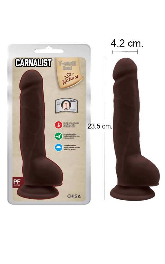 Ова е исклучително реално дилдо со анатомска градба, мек и реалистичен материјал и подлога која ствара вакуум за полесно уживање. Главичката на дилдото е нежна, добро оформена и малку испакнува од телото. По целата должина е избразден со исклучително реални форми и испакнати вени. Во основата на играчката има големи тестиси, а под нив има платформа која е компатибилна со стреп-он каиш, притоа платформата залепена на било која мазна површина ствара вакуум, така што можете да ја користите, а рацете да ви останат слободни. Основата ја прави играчката идеална како за вагинален, така и за анален секс. Во комбинација со лубрикант дилдото ќе стане влажно и лизгаво, така што нема да чувствувате дискомфорт при пенетрација и ќе ви овозможи едно реално уживање.