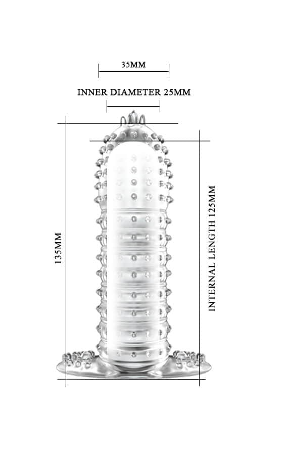 Навлаката е со текстурирана за да се зголеми триењето во вагиналната и клиторната област. Во овој случај, покрај зголемување на должината и дебелината на вашиот пенис, ќе постигнете и појака стимулација за жената.