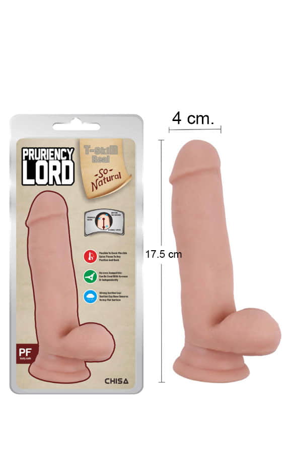Ова е исклучително реално дилдо со анатомска градба, мек и реалистичен материјал и подлога која ствара вакуум за полесно уживање. Главичката на дилдото е нежна, добро оформена и малку испакнува од телото. По целата должина е избразден со исклучително реални форми и испакнати вени. Во основата на играчката има големи тестиси, а под нив има платформа која е компатибилна со стреп-он каиш, притоа платформата залепена на било која мазна површина ствара вакуум, така што можете да ја користите, а рацете да ви останат слободни. Основата ја прави играчката идеална како за вагинален, така и за анален секс. Во комбинација со лубрикант дилдото ќе стане влажно и лизгаво, така што нема да чувствувате дискомфорт при пенетрација и ќе ви овозможи едно реално уживање.