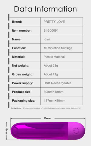 Виолетов Вибрирачки булет сјаен со 10 модови на вибрација 8 X 1.8 см. ( Pretty Love Kiwi )