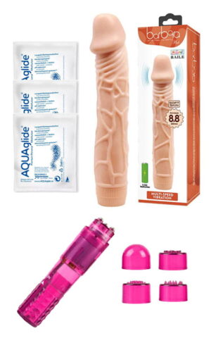 (Мегра Промо) Реалистичен вибратор клиторален масажер и 3 лубриканти за 490 ден