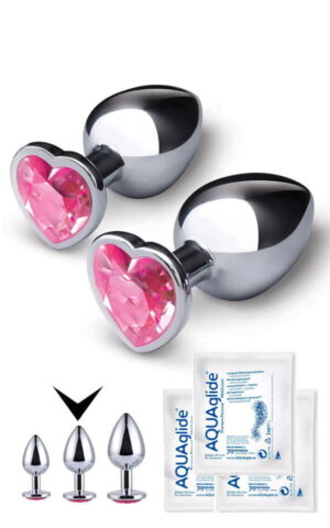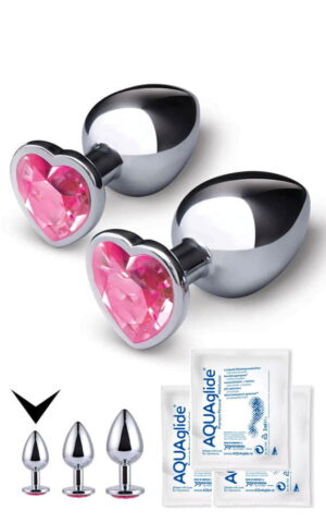 Метален бат плаг во форма на срце со 3 лубриканти (малиот)